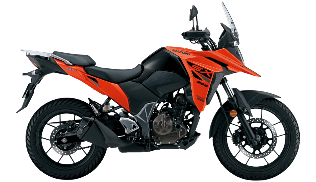 Capaz de una conducción deportiva en las curvas de caminos pavimentados y un manejo sólido en caminos sin pavimentar, la V-STROM 250 SX puede considerarse para el turismo y la aventura. Lo que hace que la V-STROM 250 SX sea una Sport Adventure Tourer tan popular, es su apariencia distintiva inspirada en la aventura, su cómoda ergonomía y su utilidad total, que se adapta a las necesidades de los clientes en cada tipo de terreno.